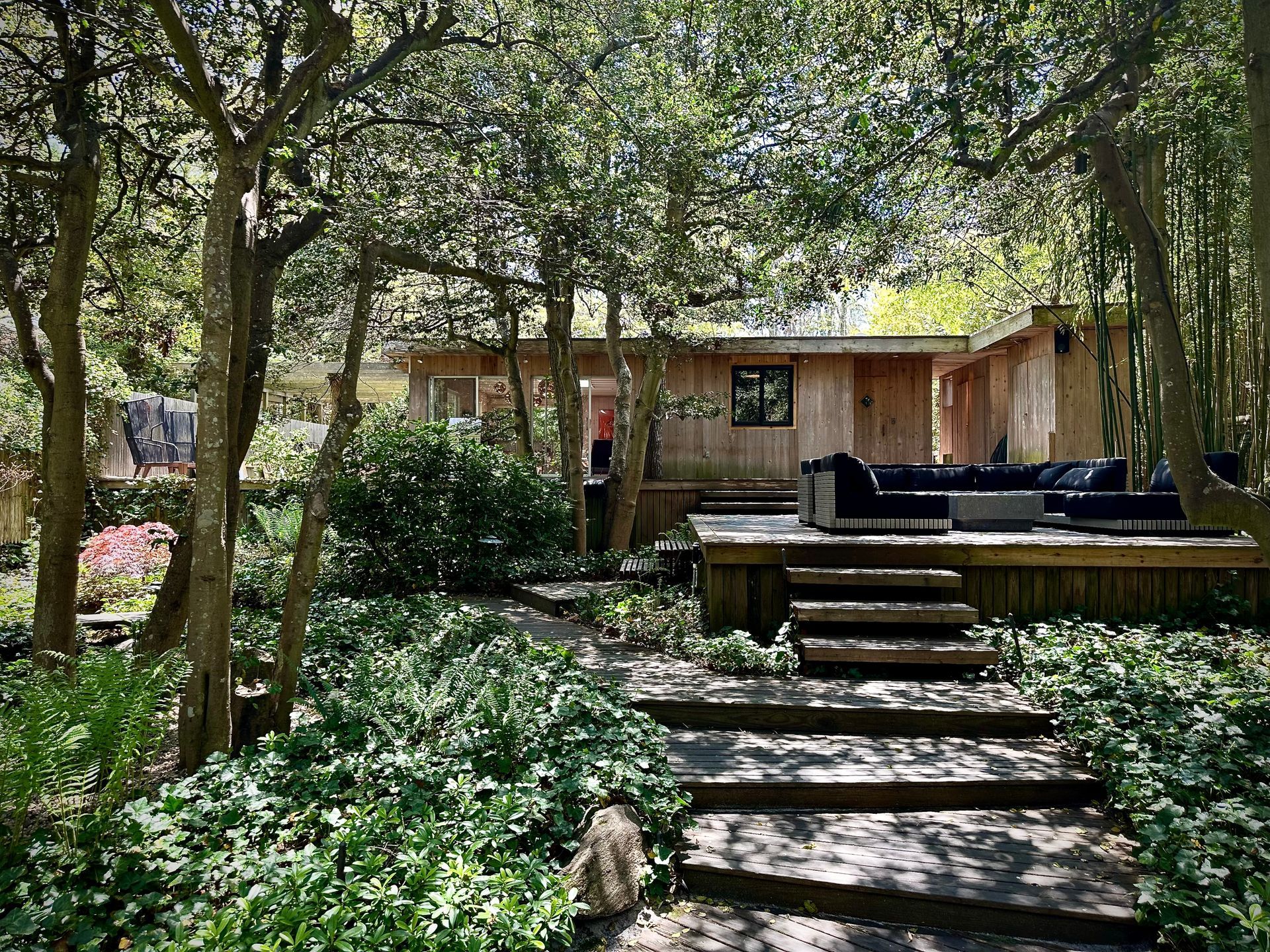 Three queen beds, each with direct outdoor access. Floor-to-ceiling windows opening onto expansive decks. Over an acre of landscaped gardens. A built-in Miele espresso machine. Mid-century architecture, recently renovated. Every detail here was a decision, not a default.
